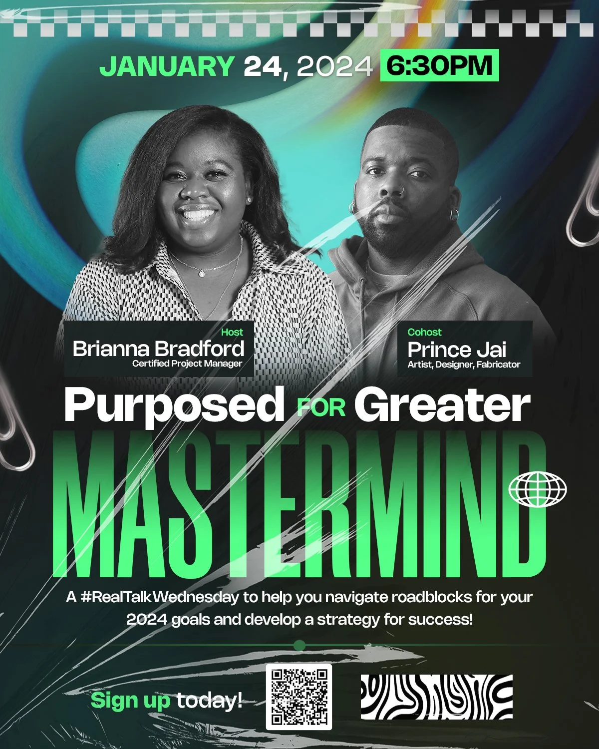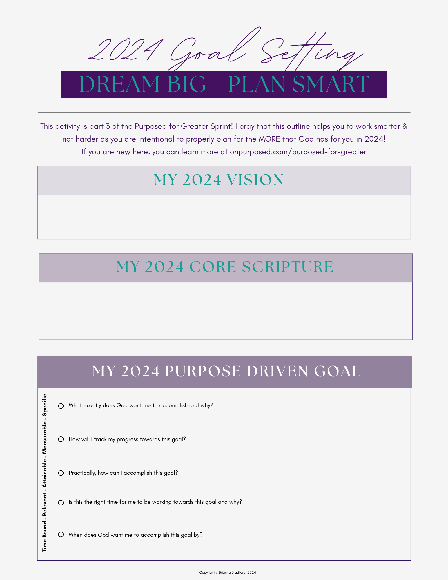 Purposed for Greater 5 week Sprint! Week 5 starts NOW! Step 1: Watch the week 5 video via the link below! Step 2: Use the canva link below to create your 2024 vision board! Week 5 Video! Access Laptop Canva Template! Access Iphone Canva Tempalte! Week 4! Step 1: Watch the week 4 video via the link below! Step 2: Sign up to join us for the Purposed Mastermind! Week 4 is Here! Register for the MASTERMIND! Week 3 Step 1: Watch the week 3 video via the link below! Step 2: Download the FREE goal setting guide! Week 3: Writing SMART Goals! Download the SMART Goal Guide! Week 2 Step 1: Watch the week 2 video via the link below! Step 2: Follow the instructions below to dream & write the vision! Week 2: Dream and Write the Vision! Week 2: Apple Playlist! Happy New Year, Step 1: Watch the week 1 video via the link below! Step 2: Follow the instructions below to rest & reflect! Week 1: Rest and Reflect Have questions or need help, send me an emai! Didn’t receive this information in your inbox? Use the link below to join the challenge so you don’t miss the next release! I want to join the Challenge! Missed this #RealTalkWednesday? Use the link below watch the replay on YouTube! Purposed for Greater Replay! To help you implement what we discussed, we prepared a few notes for YOU!
